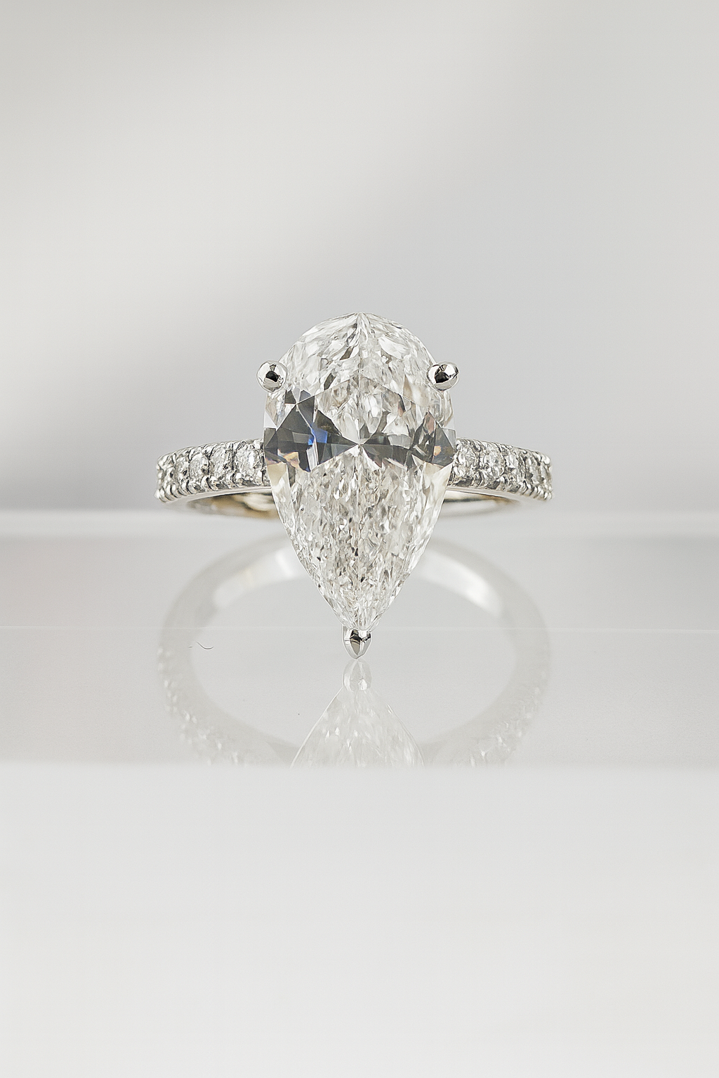 Αυτό το δαχτυλίδι διαθέτει ένα διαμάντι σε σχήμα αχλαδιού 3,03 καρατίων εξαιρετικής λευκότητας.